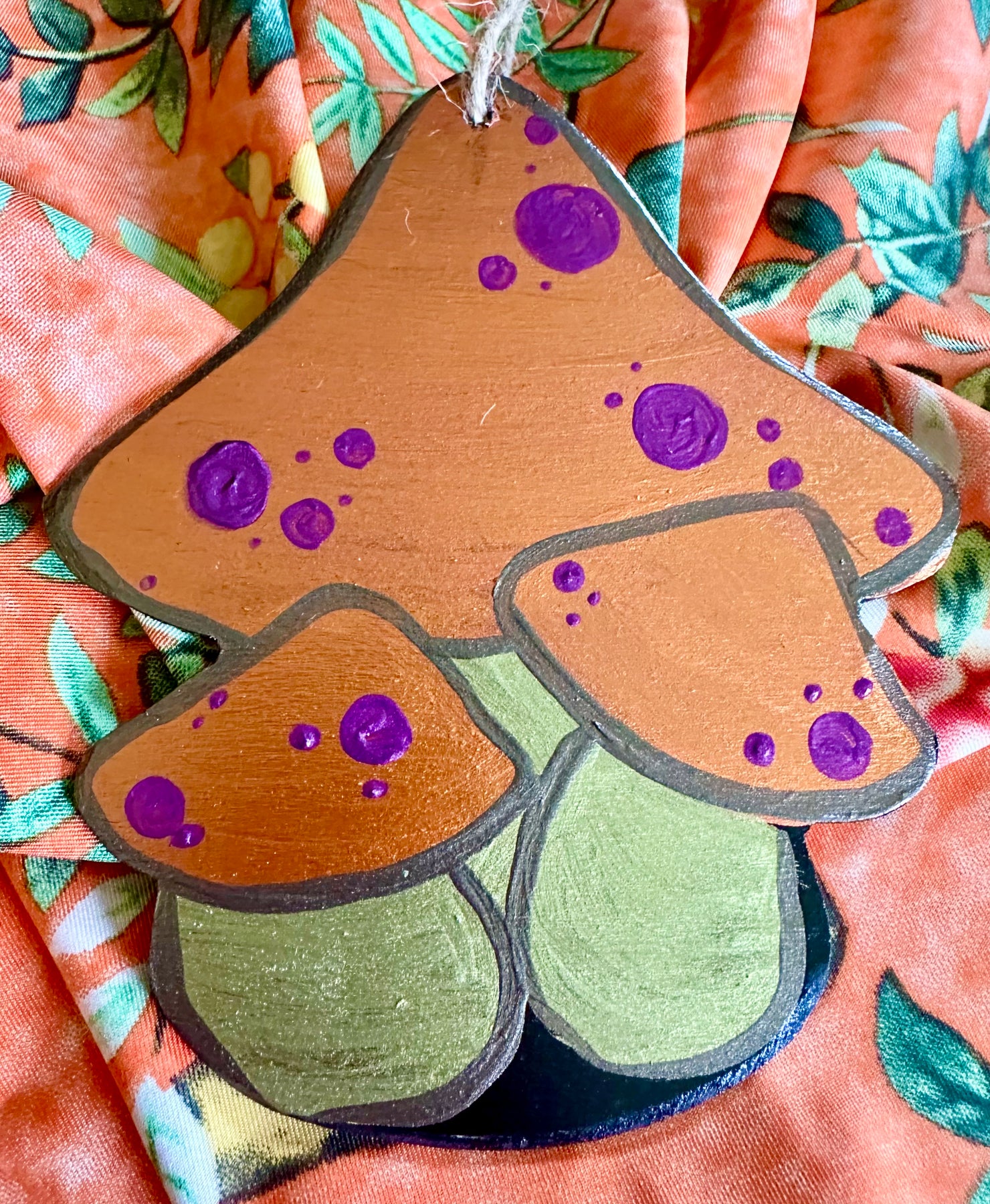 Darling painted vintage style mushroom ornament, door hanger, window hanger and decor. We hand cut these shapes from a pattern exclusive to PAINTED. Each Mushroom is hand painted . Each order is hand painted in similar colors to the ones shown. Personalization (name & date) available - put details in notes section of order. Each item is painted at time of order and takes 3-5 business days before shipping.