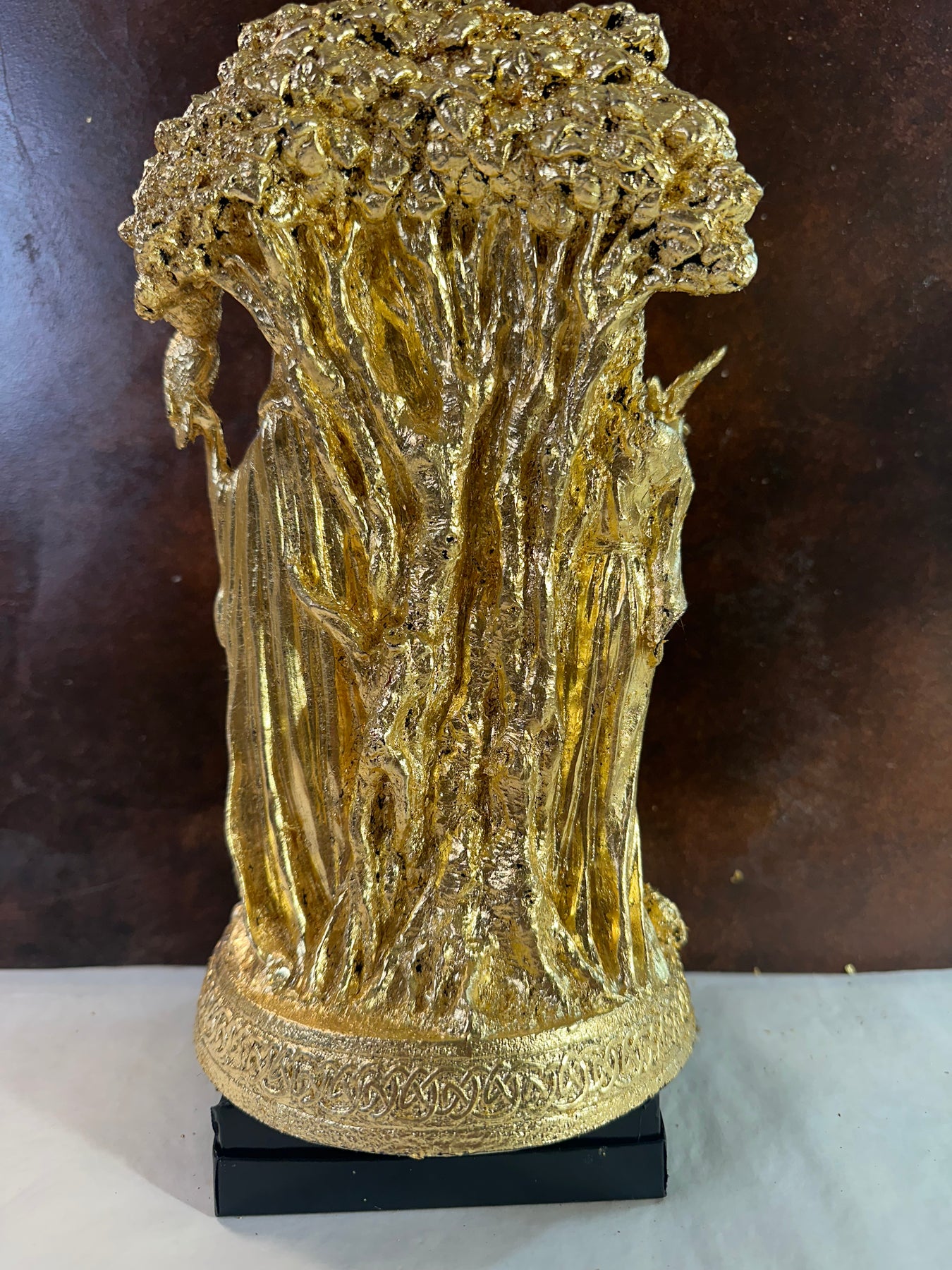 Beautiful hand gilded case resin Mother, Maiden & Crone statue. Weighted base. Approx 11” tall. Sealed to prevent oxidation