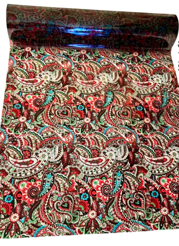 Gorgeous transparent paisley, goes on any surface. Stunning shine and spectacular release. For best results, use our ArtsSyVille Foil Adhesive or any of our fabric friendly foil adhesives. 1 square foot = 1 in order amount, order as many feet as desired.